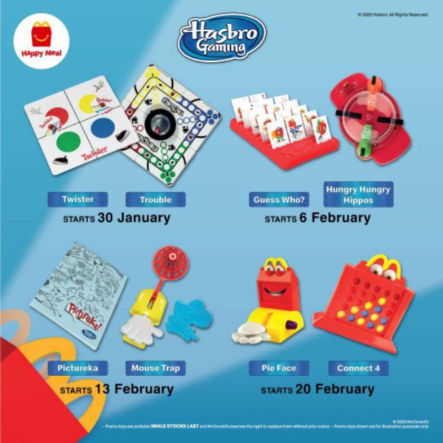 McDonalds encourages all to bring on the family fun with these mini games included for a limited time. Luckily in addition to protein-packed milk these Happy Meals include playable games from Hasbro Gaming -- and the games are all game. According to a worker we are getting Hasbro Toys on January 12 2021.